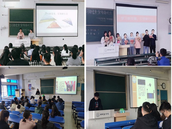 学习新思想,以赛促参与。以党章、党史、十九大报告和习近平新时代中国特色社会主义思想为内容,开展“党章党史知识竞赛”和“时事政治PPT演讲比赛”。通过竞赛的形式提高同学们参与的积极性,激发同学们学习新思想的自觉性,营造浓厚的学习氛围。