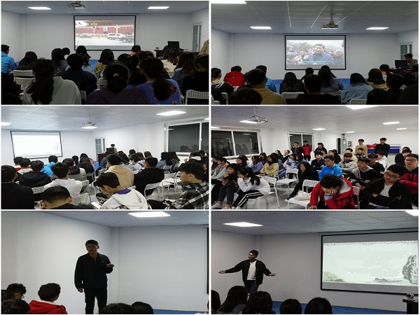 知识记心中,讨论增信念。观看爱国影视《建国大业》和《习近平治国方略:中国这五年》,通过视频更直观地了解我党第一代领导人的英雄事迹和近五年中国发生的巨大变化,极大地提高了同学们的学习热情,深化了同学们对党和国家政策的了解。观影之后,同学们进行了“谈谈家乡这五年的变化”主题演讲,大家积极发言,场面热烈。