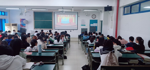 为了迎接第四个全民国家安全教育日,通过多种形式开展国家安全宣传教育活动,进一步提升同学们的国家安全意识,牢固树立“国家安全,人人有责”的思想,全面深入开展校园安全文明教育,抓好校园安全管理,努力构建和谐稳定的平安校园,4月15日,医学影像学院2018年级全体同学在理论教学楼205教室召开以“增强国家安全意识,自觉维护国家安全”为主题的学习活动。