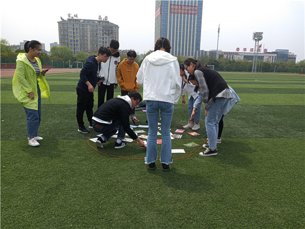 4月,阳光正好,微风不燥,正是户外拓展好时节。操场上的同学们分为三组,各组通过合作顺利完成了“齐眉棍”、“解手环”和“极速六十秒”三个心理素质拓展项目,同学们积极参与,互相配合,顺利突破难关,圆满完成任务,用行动证明了团结就是力量。