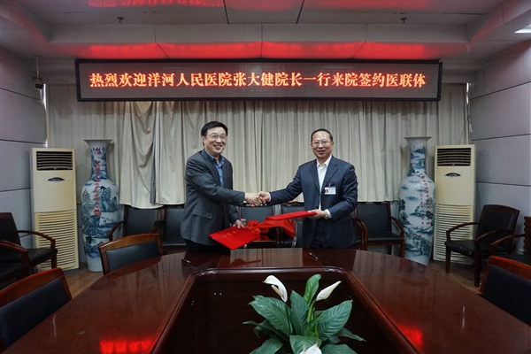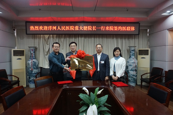 4月23日上午,一附院与洋河人民医院正式签约医联体,洋河人民医院张大健院长来我院参加签约揭牌仪式,一附院李光早副院长及相关部门负责人出席会议。
