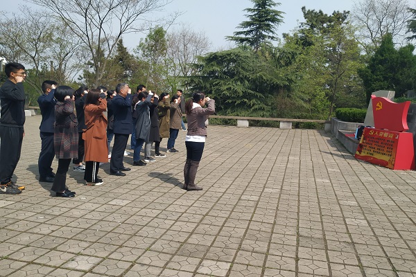 在庄严的烈士纪念碑前,全体党员怀着对革命烈士无比崇敬的心情向为革命事业牺牲的烈士们敬花圈、默哀鞠躬,深切缅怀革命先烈;在肃穆的气氛中,全体党员高举右拳,重温入党誓词,坚定永跟党走的决心。党总支副书记王春在讲话中指出,2019我们要不忘初心,砥砺前行。