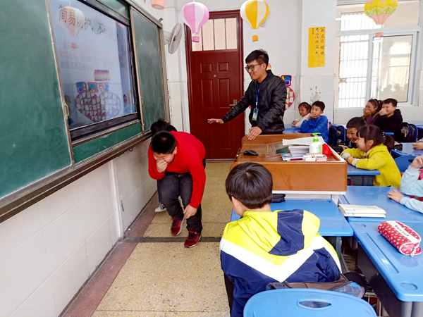 本次环教课环旨在把有关自然灾害的各种常识以及灾害中的自救技能准确地传递给学生,增强小学生灾难应急自救能力。活动现场,环境保护协会志愿者同学们作为“小讲师”,先后从自然灾难分类,溺水、踩踏、电击等几类常见突发危机的应急处理,以及心肺复苏术等方面对学生们进行了专项宣教,并指导学生们利用模型人进行现场实践,现场活动氛围热烈,教学效果良好。