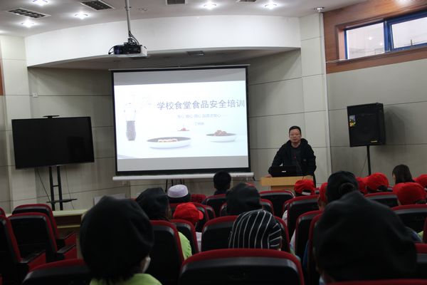 4月10日下午,后勤管理处在学校小学术报告厅召开食堂从业人员食品安全知识培训会。后勤管理处处长周建军、副处长王文礼、饮食服务中心工作人员、各学生食堂负责人、管理人员和从业人员共100余人参加培训。校医院丁楠楠老师主讲。王文礼主持会议。