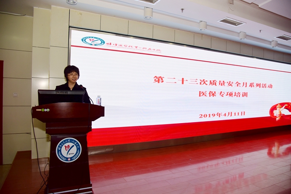 4月是医院质量安全月,同时也是国家“打击欺诈骗保行为,维护医保基金安全”集中宣传月,为贯彻两项活动精神,提升医院医保整体服务水平,4月11日下午,由医院质量管理科、医保办、医务处、教育处联合组办的“第二十三次质量安全月系列活动暨医保专项培训”在行政楼七楼召开,参加会议的有各临床科室主任、住院总、医保联系人、护士长、电脑护士等。蚌埠市医保中心郑云芝、刘田两位专家应邀参会并讲话。培训会议由质量管理科黄明智副科长主持。