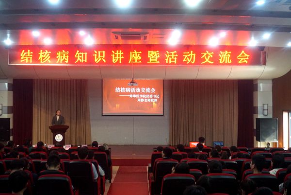 为响应习近平总书记提出的健康中国理念,推进部署今年“百千万志愿者结核病防治知识传播活动”,3月28日,在我校学术报告厅,校团委联合蚌埠市疾病预防控制中心共同开展结核病知识讲座暨活动交流会。蚌埠市疾控中心副主任钱青文及中心相关同志,校团委副书记周静及我校的200余名大学生青年志愿者参加了活动。