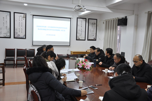 为进一步做好推荐免试硕士研究生选拔工作,根据教育部推荐优秀应届本科毕业生免试攻读硕士学位研究生相关文件精神和《蚌埠医学院推荐优秀应届本科毕业生免试攻读硕士学位研究生工作管理办法(试行)》的文件内容要求,体现“全面考查、综合评价、择优选拔”的评价体系和工作机制,临床医学院第一分党委于1月10日上午在分党委会议室召开推荐免试硕士研究生实施细则修订讨论会。