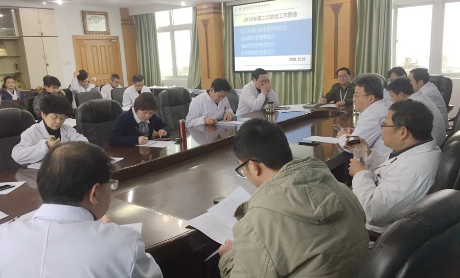 12月19日,二附院质量与安全管理委员会、临床路径管理委员会、临床用血管理委员会、医学检验管理委员会在行政楼2号会议室举行联合工作例会。院长崔虎、副院长杨青杨、王群及相关职能部门负责人、各临床、医技科室主任参加会议。