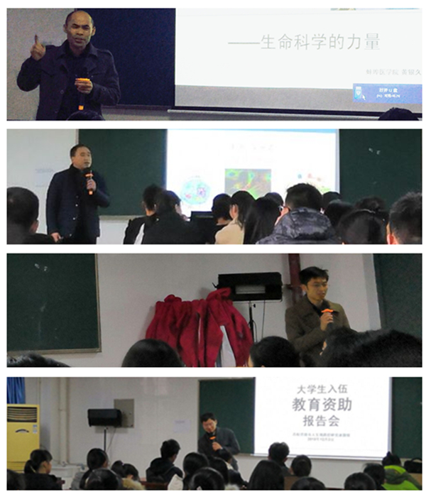 11月6日、19日和12月19日,分别由黄银久教授、梁猛副教授、刘长青教授举行题为“人与肿瘤之斗争”“生物学研究技术”“干细胞与移植治疗”的“走近生物医学”第一阶段系列学术讲座。三位老师精心准备,讲座幽默风趣,阐述了当前生物医学研究领域里的热点内容和重点问题,不但从专业方向给广大同学进行了讲解与科普宣传,更就大学人生规划和未来发展提出了宝贵的建议,激发了新生对生物科学与生物技术专业的学习兴趣和专业认可度,同时也为学生今后的专业学习和职业规划奠定了积极的基础。