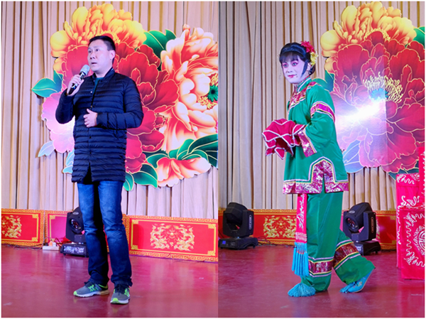 学生演出结束以后,校工会副主席何文老师和团委连俊杰老师也登台献艺,何老师以程派经典剧目《荒山泪》一段赢得满堂彩,连老师以泗州戏《三姐思春》的幽默表演,博得现场观众捧腹大笑。