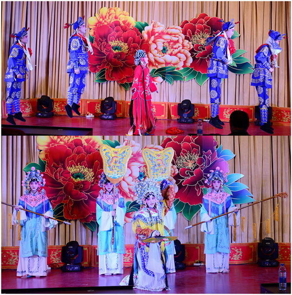 演出在京剧联唱的“流水板”唱腔中拉开了序幕,中英文对照版《苏三起解》更是集中展示文化的交流和碰撞;京剧《凤还巢》、《贵妃醉酒》唱腔悠扬,表演细腻传神,尽显京剧梅派的雍容华贵;豫剧《抬花轿》、《三哭殿》唱腔高亢明亮,表演洒脱大气,把“河南梆子”的慷慨激昂展现得淋漓尽致……学生们用心地在方寸舞台上演绎经典角色,体味戏曲文化的无穷魅力。