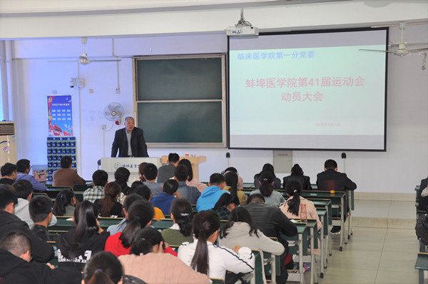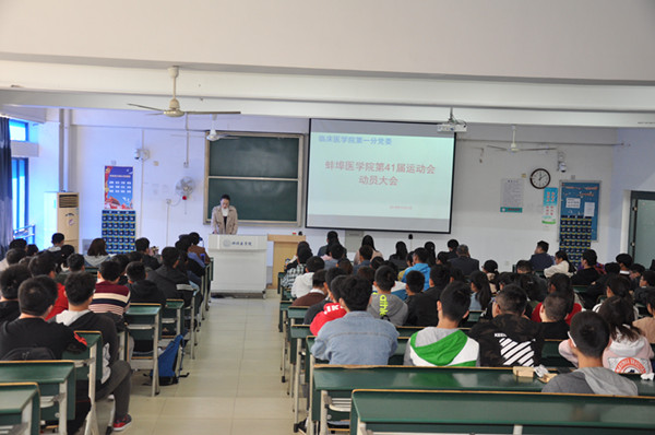 为了迎接即将到来的运动会,展现分党委运动员斗志昂扬的体育精神。11月1日中午,临床医学第一分党委于201教室举办了第41届校秋季运动会动员大会,临床第一分党委冯忠兰书记,孙文兵副书记,各年级老师以及全体参赛运动员和部分学生干部出席了本次会议。