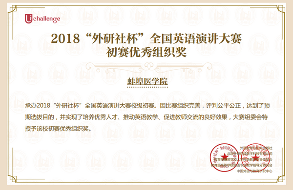 2018年10月27日-28日,2018“外研社·国才杯”大学生英语挑战赛安徽赛区比赛在合肥工业大学翡翠湖校区隆重举行。经过两天的激烈角逐,我校选拔参加的六位学生与近三百名来自全省的决赛选手(包括英语专业的学生)同台竞技,激烈角逐,最终,我校参赛选手均有获得优秀的成绩,我校也荣获三项赛事的优秀组织奖。