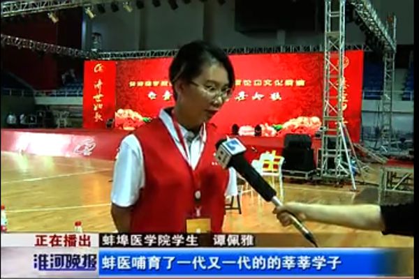 我校青协谭佩雅同学也在10月4日晚代表全体志愿者接受了蚌埠电视台的采访。在镜头面前,她表达了对学校的美好祝愿,也表示身为一名青年志愿者十分荣幸可以参与到母校的发展论坛活动中,诠释了作为青年志愿者的光荣与使命。