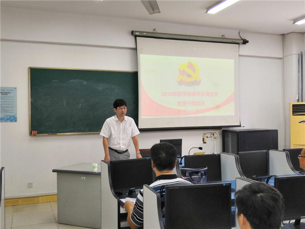 医学影像学系副主任陈建方主持会议,会议在全体党员奏唱国际歌声中正式开始,医学影像学系党总支书记徐向明宣读了“医学影像学系党总支关于举办党员集中培训的通知”,并就集中培训提出了要求。