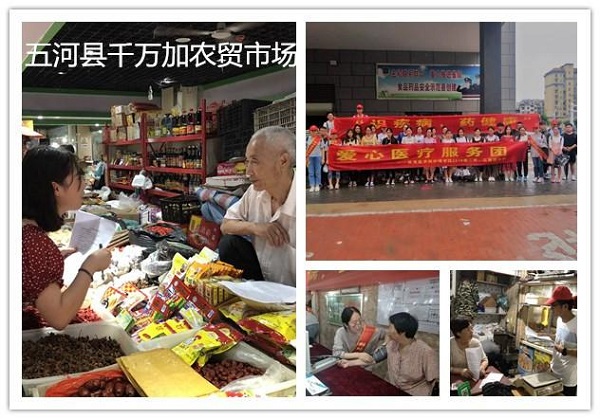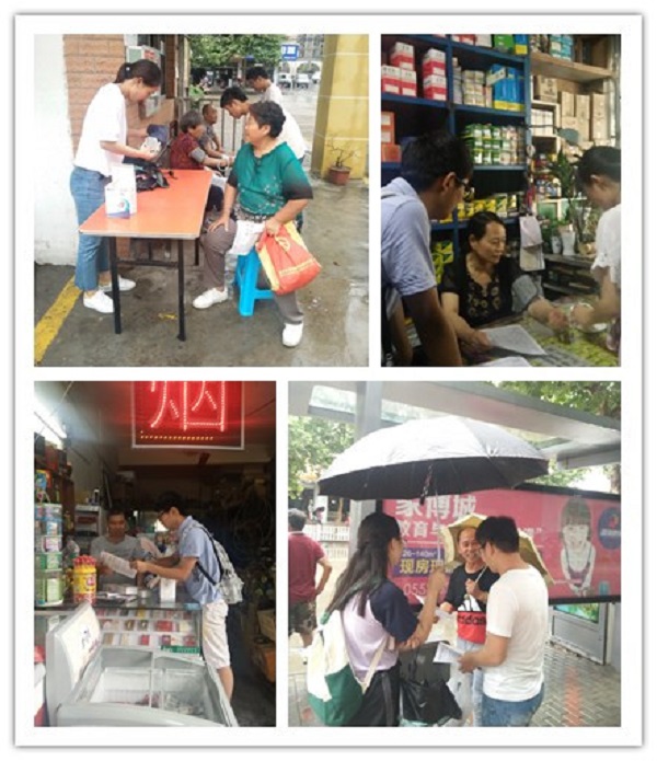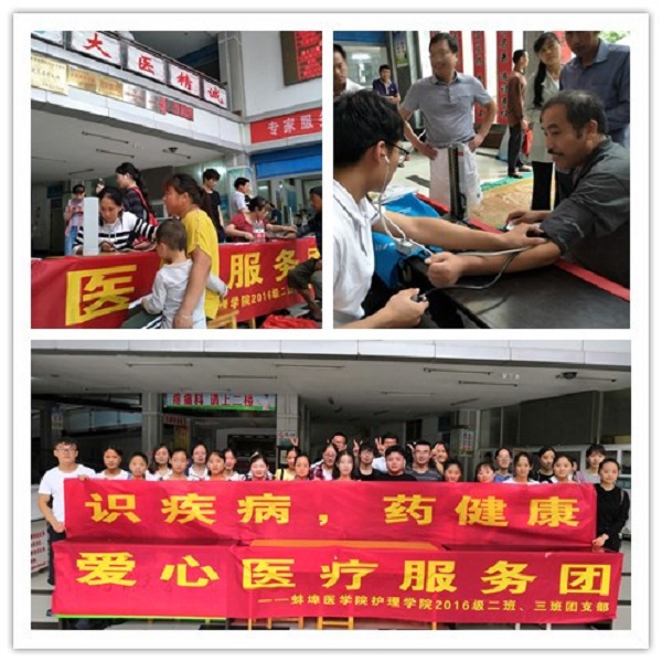 普及卫生知识,健康时讲预防,患病时讲治疗,看似简单其实不然,人们仍然存在或多或少的误区。7月15至16日护理学院2016年级“识疾病,药健康”爱心医疗服务团67名同学分三组,分别在蚌埠市区、怀远县、固镇县为社区居民开展健康知识宣教和用药安全指导。志愿者们向居民介绍科学、安全用药的重要性,回收过期药品,张贴宣传海报,发放宣传资料,进行夏季感冒、中暑以及小儿呛咳的预防、急救等健康知识宣讲普及活动。