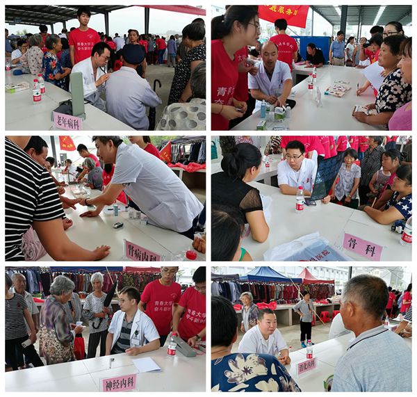 活动中,每位临床专家带领一名大学生志愿者,结合各自诊疗专长,为当地老百姓现场诊疗,认真听取患者主诉,仔细分析讲解病情,耐心解读健康知识和常见病注意事项,并提出治疗方案;现场的志愿者同学们结合自身的专业知识,在人群中发放流行病知识读本,普及合理膳食、适度运动的健康理念。服务过程中专家老师们亲自示范,以细致的询问、耐心的解答和专业的诊疗向志愿者同学们展示了优秀医务工作者的职业风范。在三个小时的活动中,共接诊450余人次,发放流行病防治知识读本400余份,赢得基层百姓的广泛好评。
