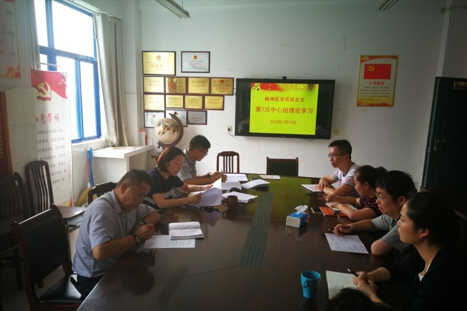 7月10日下午,精神医学系党总支组织召开2018年第七次中心组理论学习会暨“讲忠诚、严纪律、立政德”专题警示教育动员布置会议,系党总支委员、各党支部书记、系团总支书记、系工会组长参加会议。总支书记马嬿主持会议。