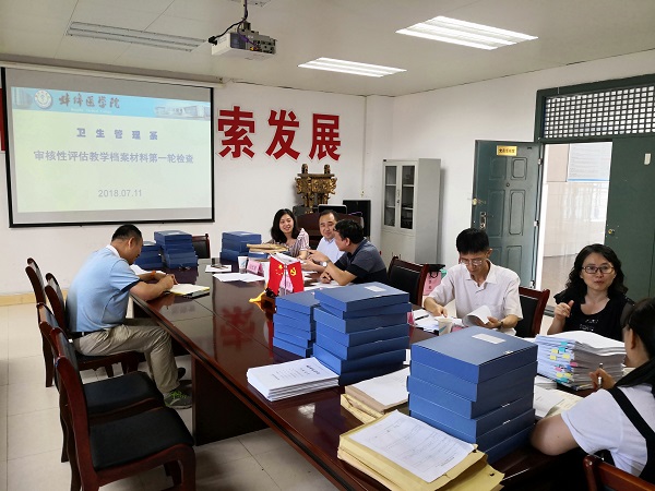 2018年7月11日上午,卫生管理系开展了系内第一轮本科教学审核性评估支撑材料检查,并邀请校内专家现场指导。卫生管理系负责人、学生年级主任、各教研室(实验中心)主任和教学秘书等参加此次检查。
