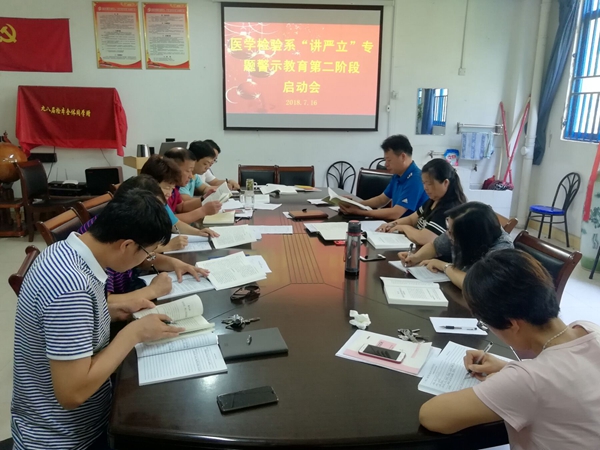 会上,荣梅生传达学习了学校“讲忠诚 严纪律 立政德”专题警示教育“集中研讨,深刻对照检查”阶段启动推进相关会议精神。并就医学检验系本阶段专题警示教育工作进行了推进和部署,要求党员干部严格按照学校党委要求做好“讲严立”专题警示教育,要深刻审视“不忘初心忘没忘?”、“牢记使命牢不牢?”,要深入调查研究,深入基层广泛征求意见,查摆问题,撰写对照检查材料。