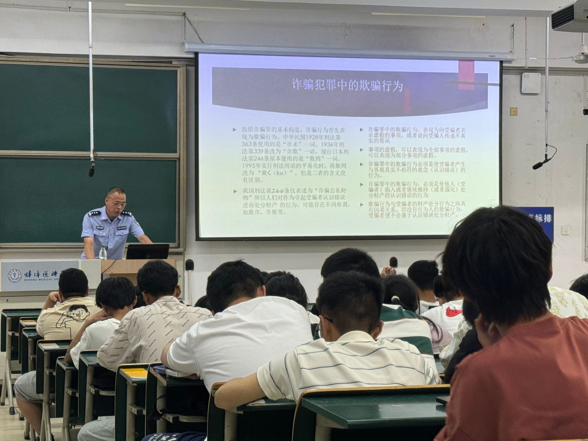 为应对当前电信诈骗手段日益翻新、案件频发高发的严峻态势,5月20日下午,临床医学院2024年级邀请王之高警官举办防电信诈骗主题教育讲座,切实增强学生安全防范意识,有效预防和减少电信诈骗案件发生。