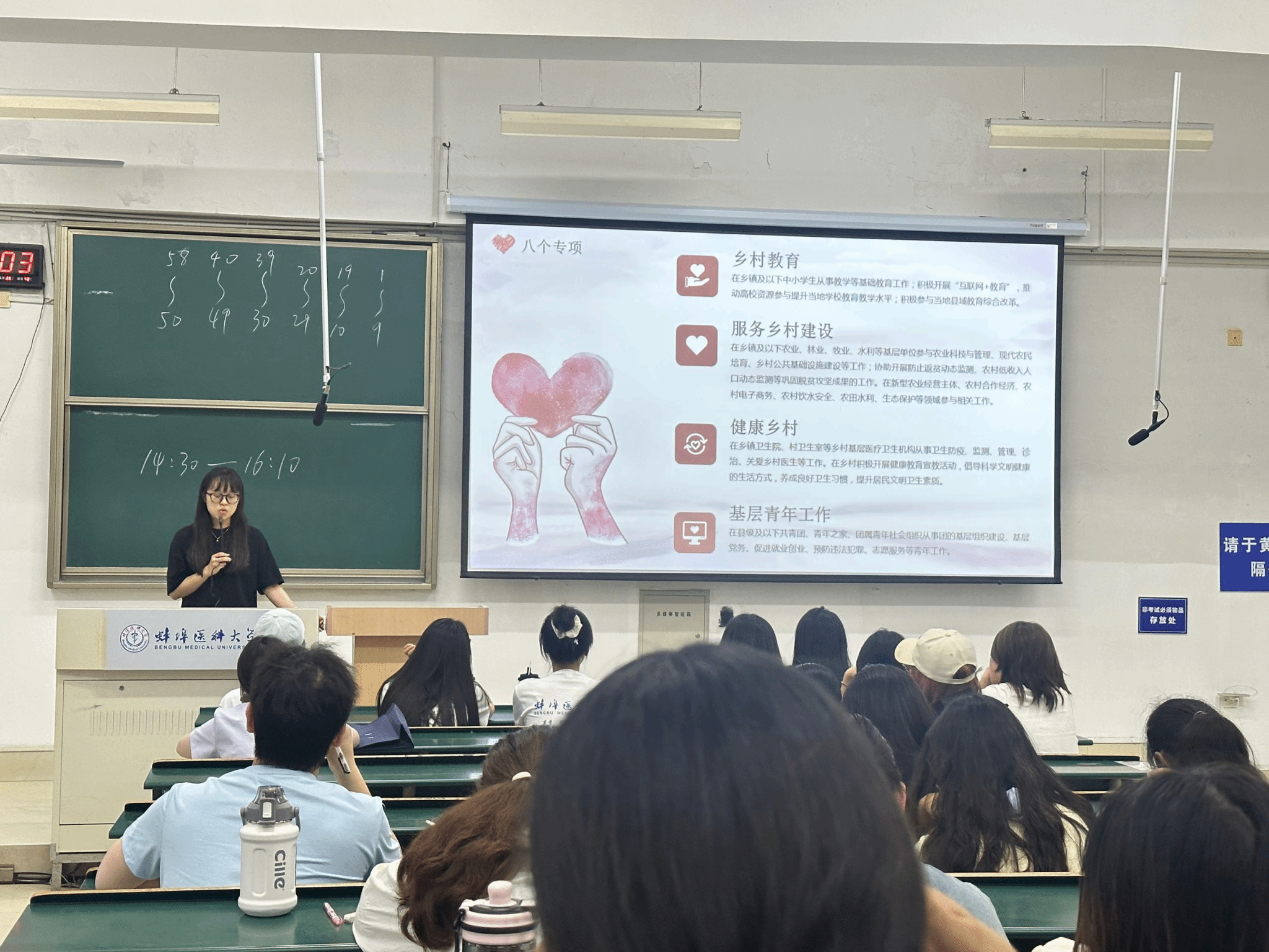 “到西部去,到基层去,到祖国和人民需要的地方去!” 在“以青春之名,赴西部之约” 的主题分享中,即将去往新疆,投身基层建设的西部计划分享代表吴亚闻同学用质朴而炽热的语言,讲述了自己参与西部计划的难忘经历。她详细解读了西部计划 “八个专项” 的具体内容,从搭建“互联网+教育”课堂助力乡村学生开拓视野,到协助完善乡村医疗卫生服务体系,每一个志愿专项都彰显着新时代青年的责任与担当。她鼓励学弟学妹们勇敢跳出舒适圈,在基层实践中淬炼本领,书写属于自己的青春华章。