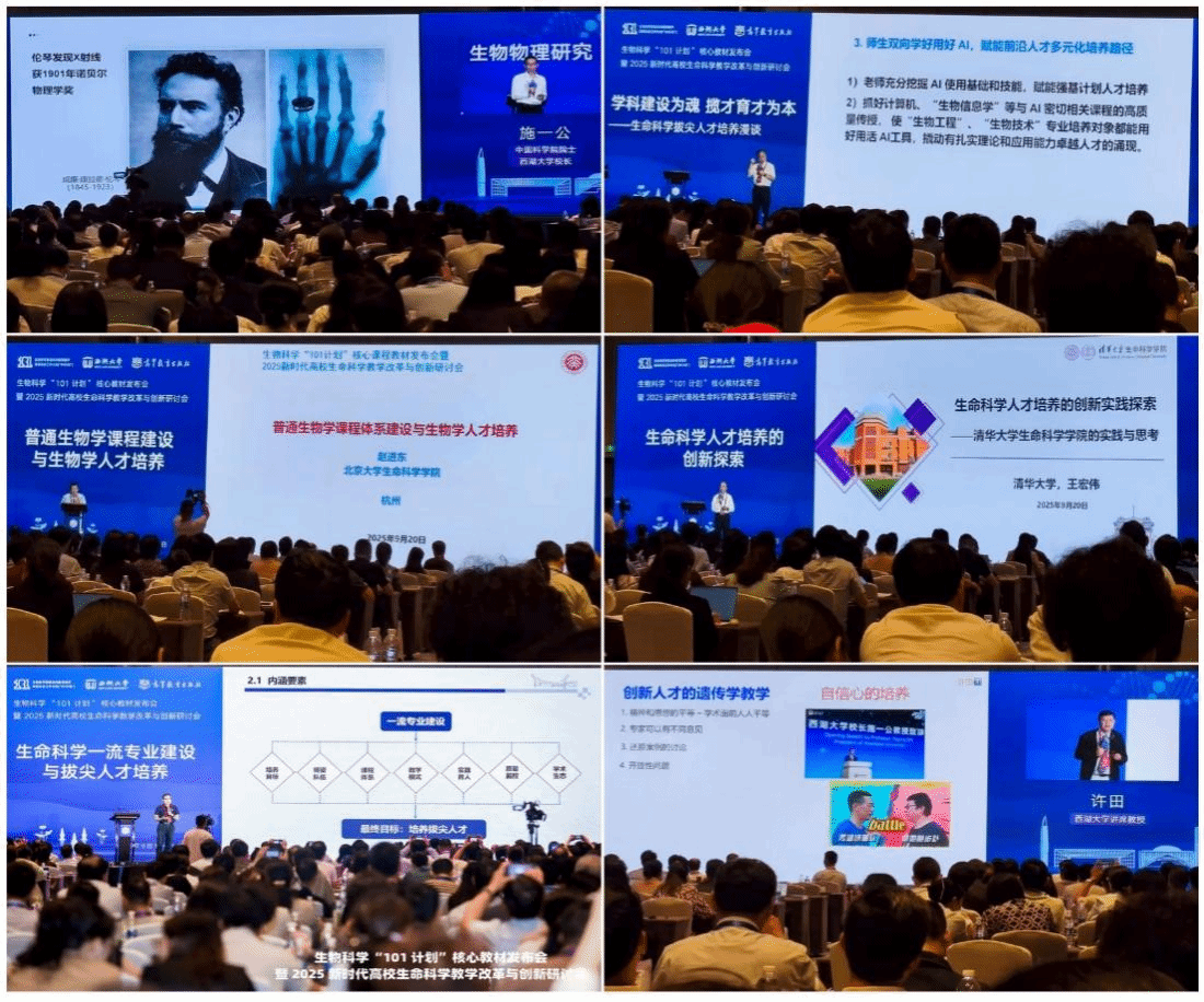 此次会议聚焦生物科学核心课程建设、“AI+生命科学”教学创新、数智化教材建设、创新思维训练等主题,不仅是生物科学教材建设与教学创新研讨的一次盛会,更为生命科学学科发展、拔尖人才培养提供了重要借鉴和推动力。“101计划”核心教材的发布为学校生物科学类专业教材编写与选用提供了权威范本,也为生物学课程创新教学模式指明了方向。