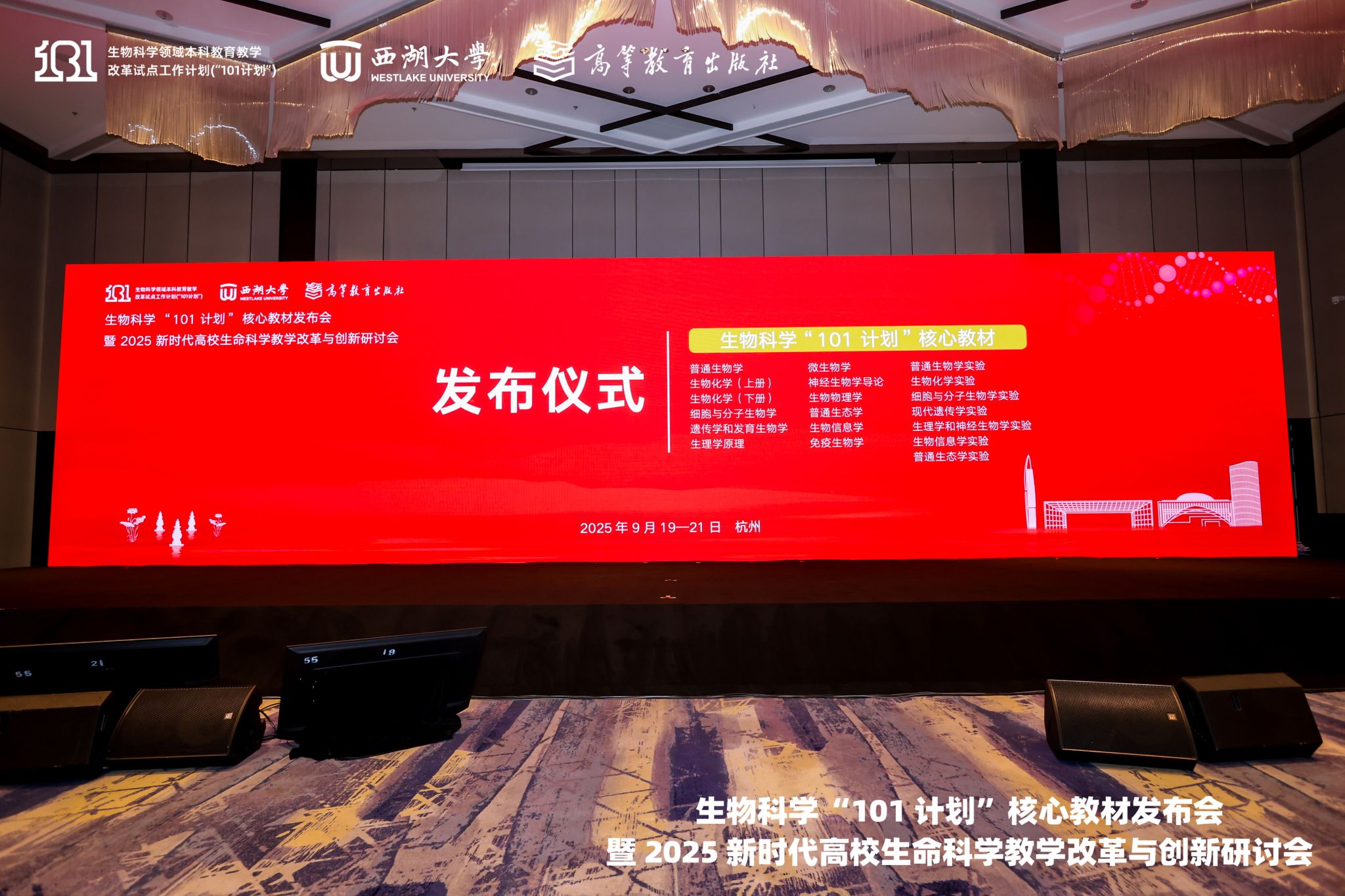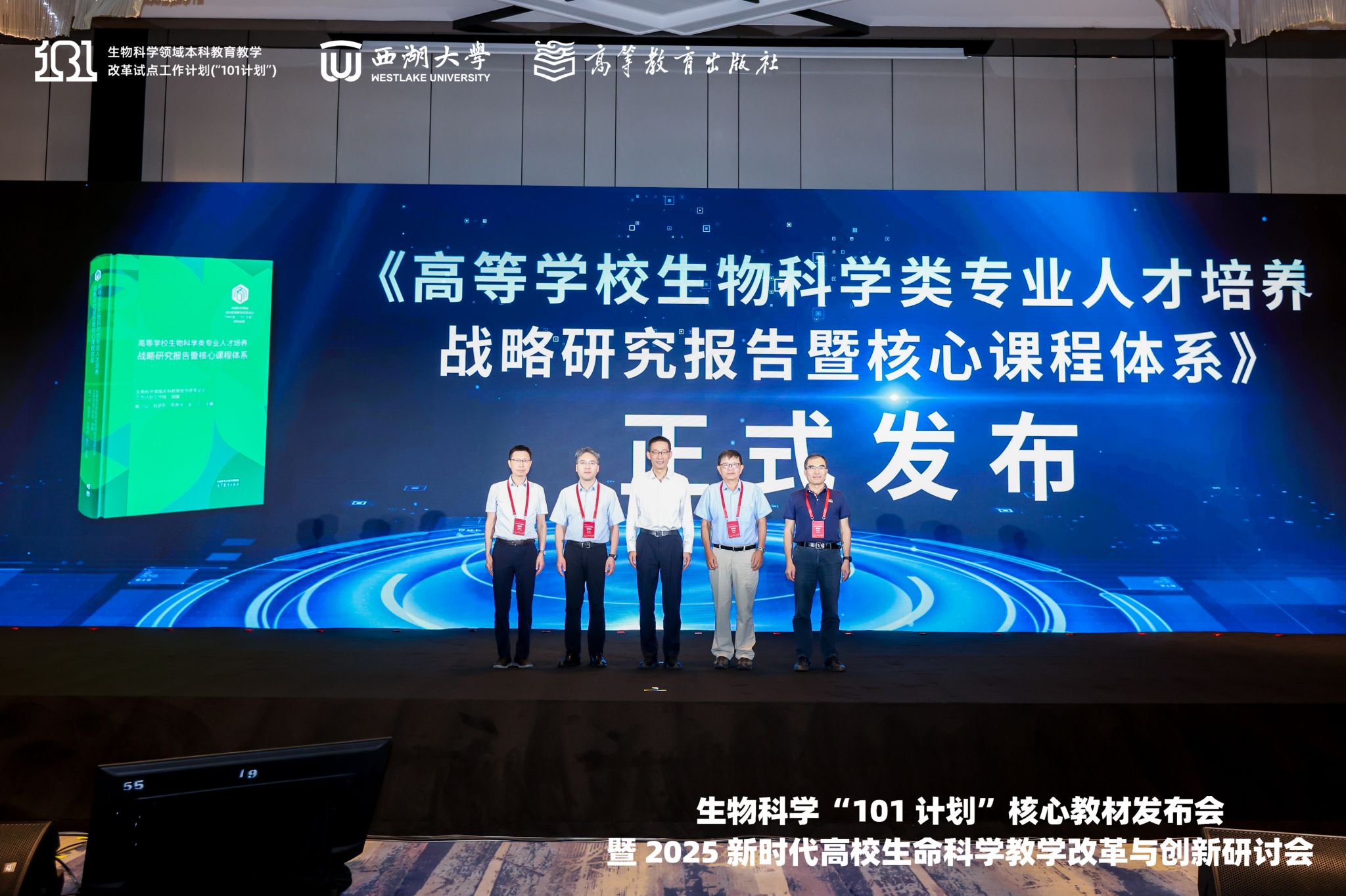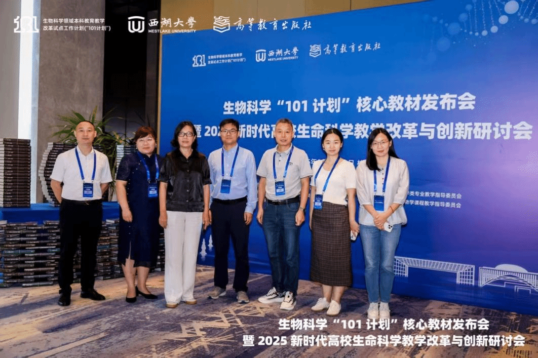 9月20日至21日,生物科学“101计划”核心教材发布会暨2025新时代高校生命科学教学改革与创新研讨会在杭州召开。会议由教育部生物科学“101计划”专家委员会、教育部高等学校生物科学类专业教学指导委员会、教育部高校大学生生物学课程教学指导委员会、高等教育出版社等多个单位联合主办,西湖大学承办。会议汇聚了来自全国183所高校生命科学领域的院士、专家学者及一线教师,共计550余人参会。共同见证《高等学校生物科学类专业人才培养战略研究报告暨核心课程体系》及生物科学“101计划”核心教材发布,并围绕生物科学一流本科专业与课程体系建设和人工智能时代的教学改革与教材建设开展研讨交流。生科院院长李正红带领教研室主任、专业及课程负责人一行参加了此次盛会。