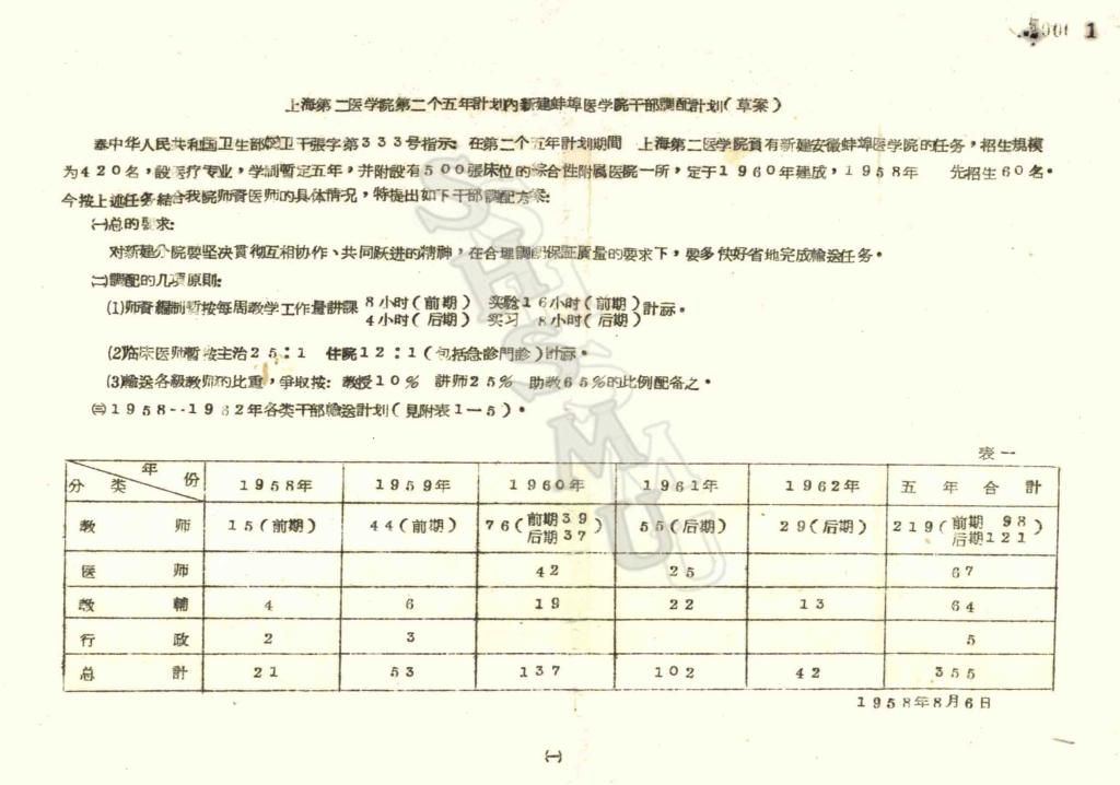 上二医第二个五年内新建蚌医干部调配计划(草案)
