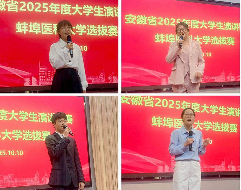 比赛现场气氛热烈,参赛选手们紧扣主题展开精彩演讲。他们或以自身专业学习为切入点,讲述医学生如何秉持“笃学 精业 修德 厚生”的校训深耕专业领域;或以社会实践经历为素材,分享在基层走访调研、科技创新实践中对“挺膺担当”的理解;也有选手结合地域文化,诠释新时代青年如何在新时代继承和发展徽文化。选手们的表达或激昂澎湃,或深情恳切,将个人理想与家国责任紧密结合,生动展现了蚌医学子对时代命题的思考与回应。