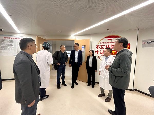 调研中,孙文兵一行实地参观了蚌埠市口腔医院诊疗中心、口腔医学种植手术室、数字化口腔技术中心等核心区域。参观过程中,院方详细介绍了医院硬件投入、临床技术特色、医疗服务能力以及院感控制方面的具体情况。孙文兵对医院现代化的设施及环境、规范化的管理运营、人性化的服务理念给予了高度评价。
