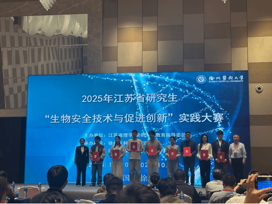 近日,由江苏省理学2类研究生教育指导委员会主办、徐州医科大学承办的第五届“江苏省研究生生物安全技术与促进创新实践大赛”在徐州举行。来自全国18所高校的近百名博士、硕士研究生同台竞技,集中展示生物安全领域的最新创新成果。我校临床检验诊断学和医学检验技术专业六位同学参加比赛,其中王欣宇、代梦璐和范薪茹同学荣获大赛二等奖,朱泽锋、刘雨婷和朱成乐荣获优胜奖,蚌埠医科大学荣获优秀组织奖。