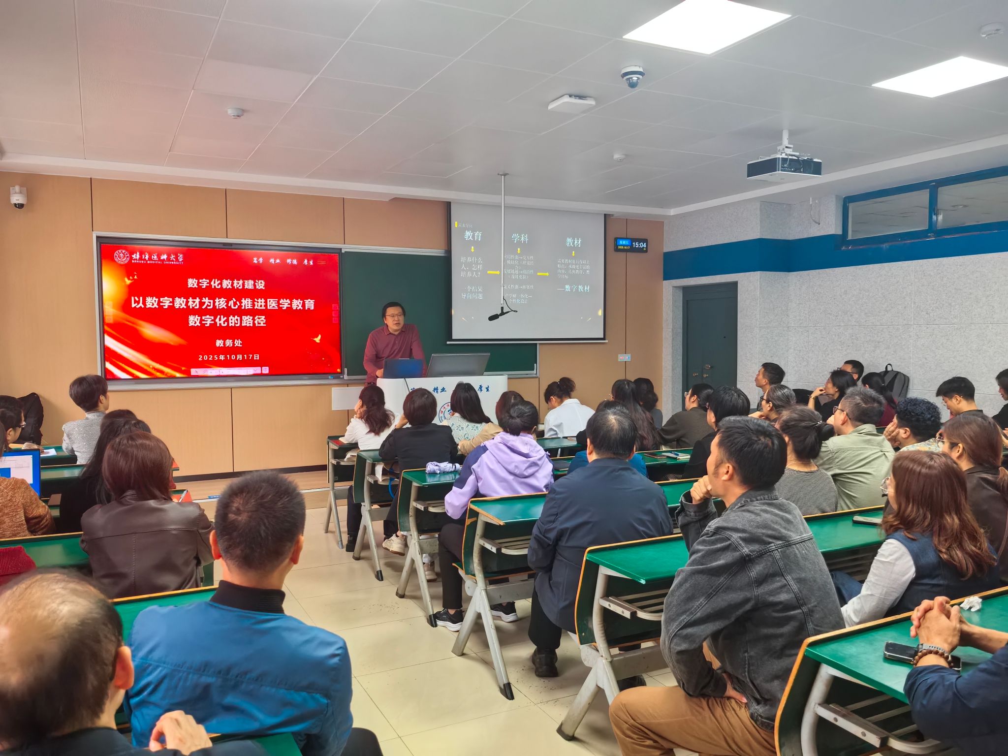为加快推进学校数字教材建设进程,10月17日,学校特邀人民卫生电子音像出版社数字教材部医学编辑陈曦来校开展数字教材建设专题培训,70余名教师参加培训。培训会由教务处副处长李娴主持。