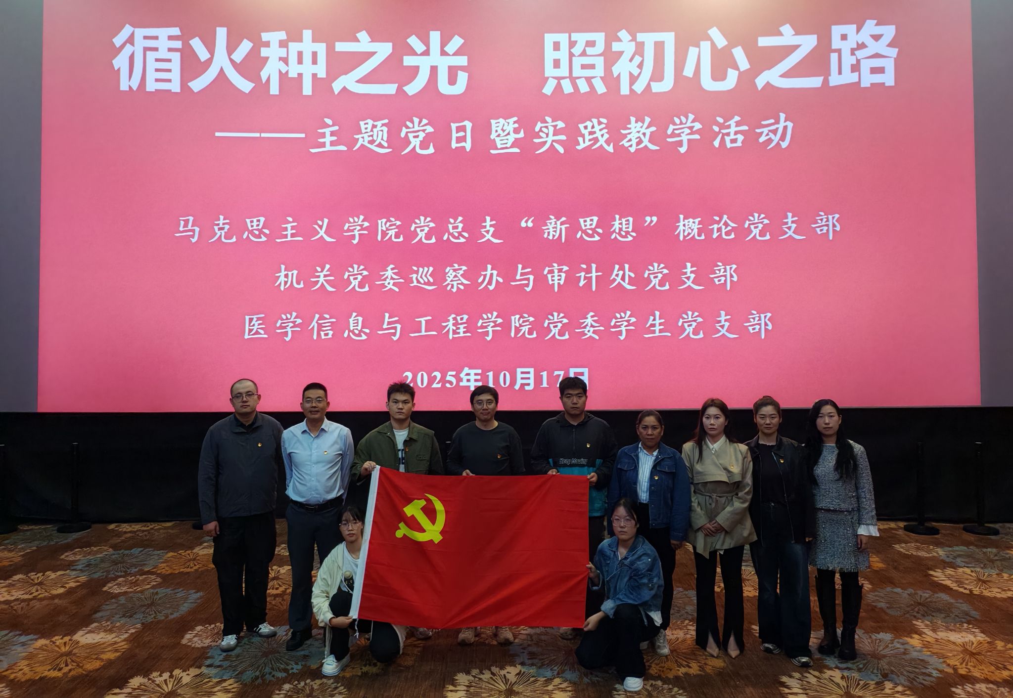 10月17日,马克思主义学院党总支习近平新时代中国特色社会主义思想概论党支部联合机关党委巡察办与审计处党支部和医学信息与工程学院党委学生党支部共同开展主题党日暨实践教学活动。支部党员、班级思政委员和学生代表共100余人集体观看重大革命历史题材电影《火种》,从党史中学习先烈事迹,汲取前进力量。