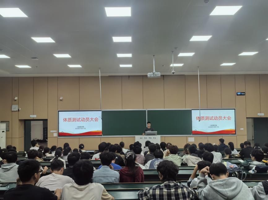 当天晚上,口腔医学院召开了《国家学生体质健康标准》测试动员大会。学院党委副书记张云波、辅导员左若雨、金齐德、邱若兰以及全体参测学生参会。会上,张云波介绍了此次测试工作的重要意义,阐述了体育锻炼、拥有健康体魄对于医学生的重要性。希望大家能够正确认识测试,端正态度,严肃纪律,积极训练,以饱满的精神状态和最佳的体能水平迎接测试。随后,左若雨就抽测的具体项目、学院安排以及后续训练计划等向同学们作了补充说明和动员。