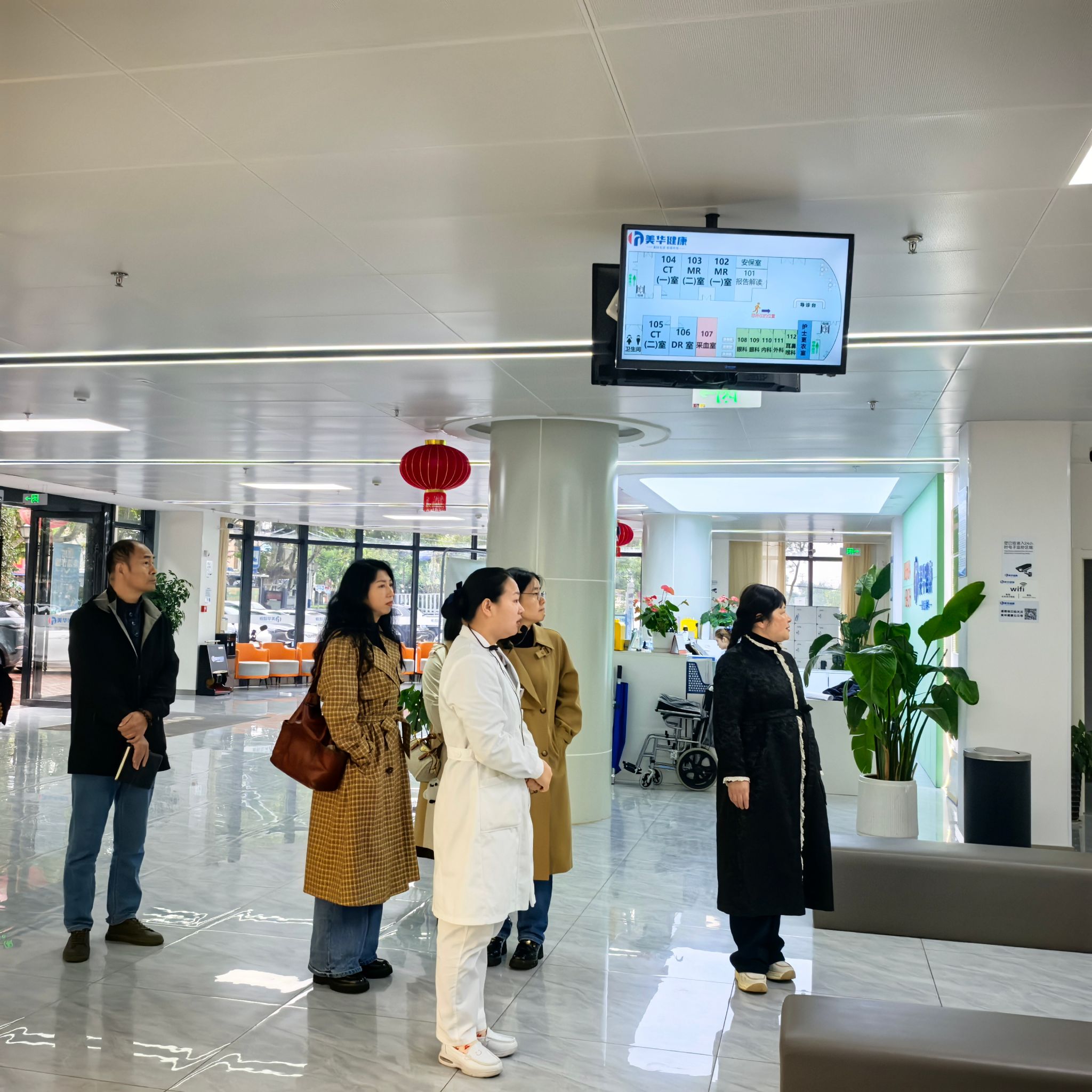 朱宁宁一行参观了美华健康管理中心,实地考察了数字医疗垂类大模型的应用场景以及中医特色检测与康复理疗项目,深入了解基于5G技术的“互联网+健康咨询”服务平台,一行人对美华健康在智慧医疗与中西医结合领域的创新实践给予高度评价。