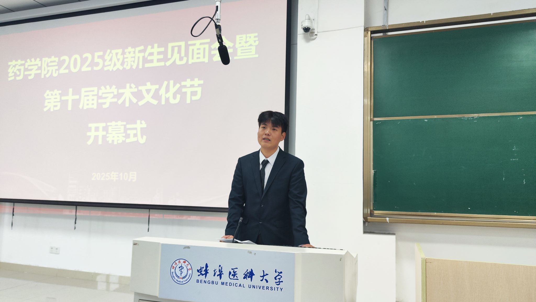 活动在热烈的氛围中拉开帷幕。药学院党委书记陈艳军代表学院向全体新生致以热烈欢迎,介绍了学院师资建设、教学科研、学生培养等方面基本情况,并勉励同学们珍惜大学时光,夯实专业基础,积极投身实践,勇于迎接挑战,在新起点扬帆起航,书写无愧于时代的青春篇章。药学院学术文化节自2016年创办以来,通过学术交流、技能竞赛、文体活动等多元形式,有效营造了浓厚的学术氛围和优良学风,已成为凝聚师生、推动学院高质量发展的重要平台。