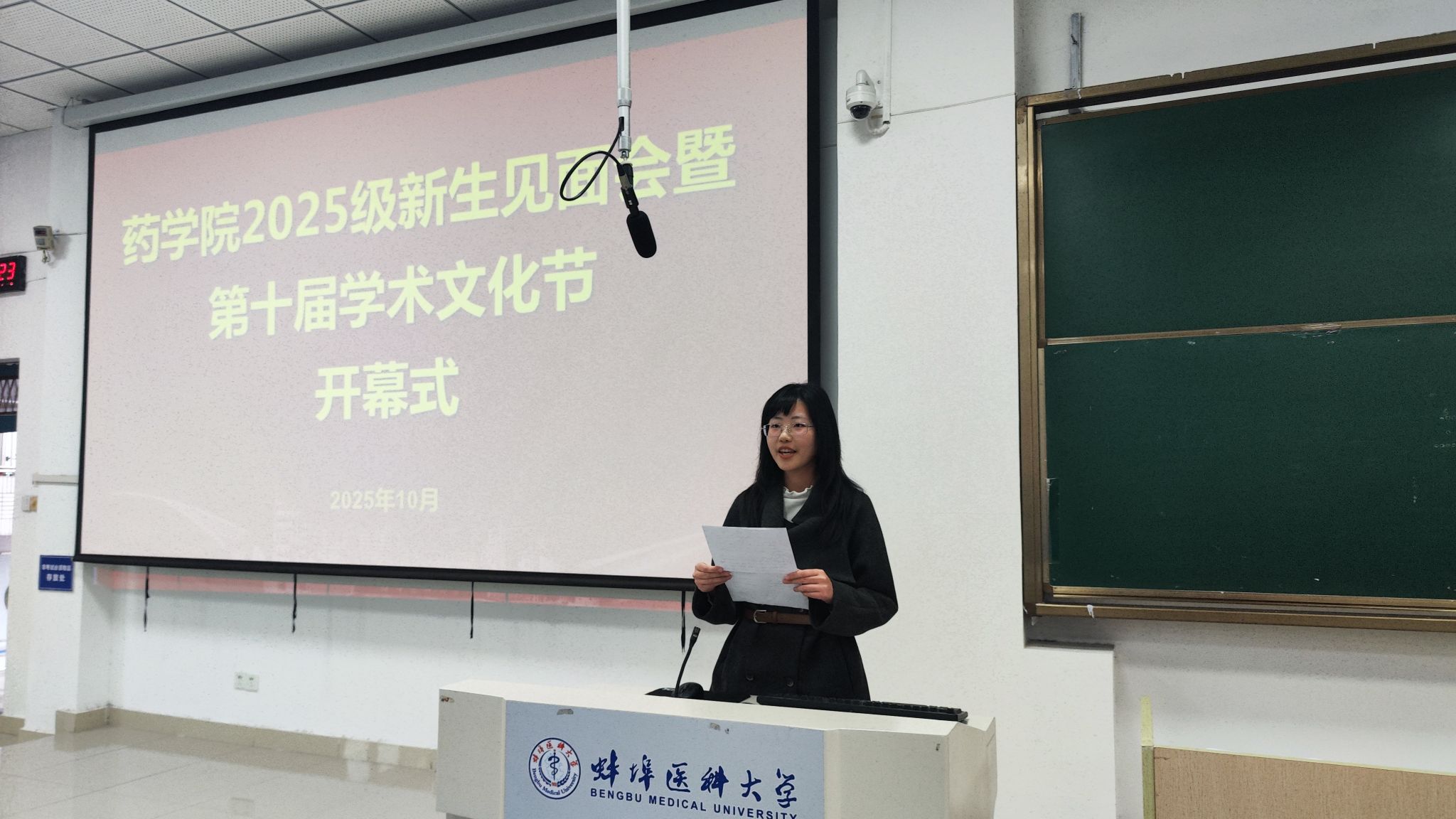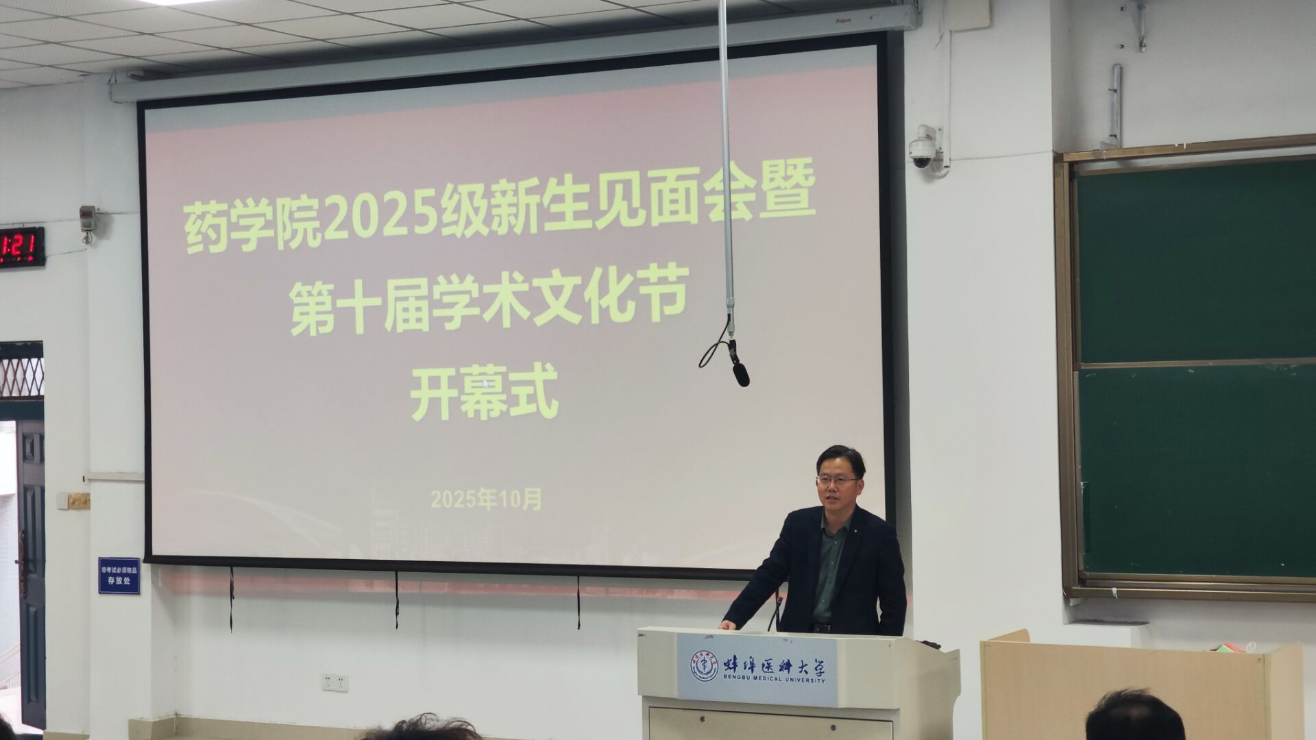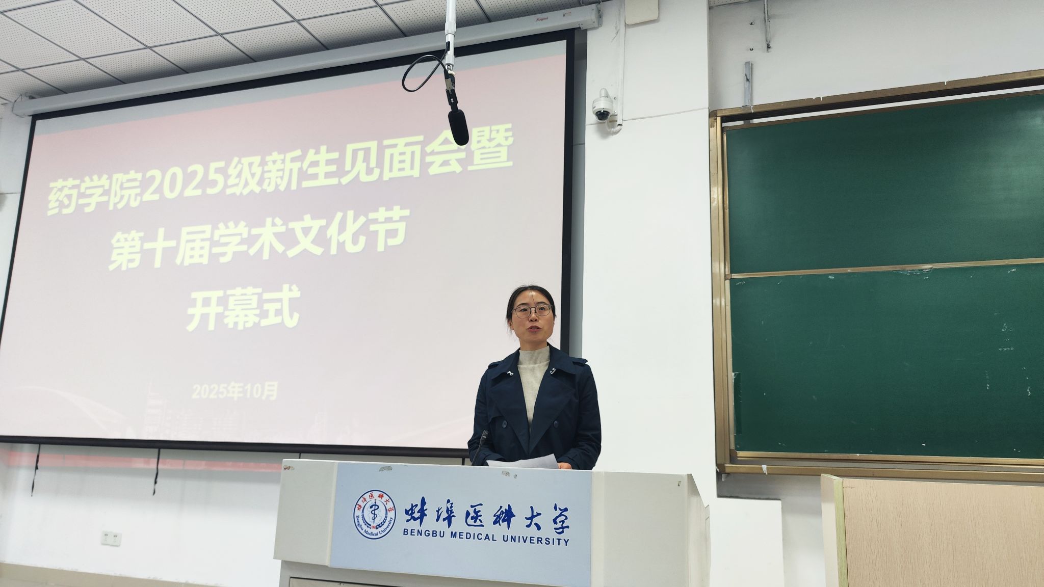 10月21日下午,药学院举行2025级新生见面会暨第十届学术文化节开幕式。学院领导、党委委员、各教研室与实验中心负责人、第一及第二附属医院药剂科负责人、各年级辅导员以及2025级全体本科生和硕士研究生共同参加。