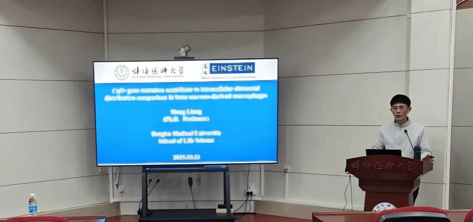 学术报告后,梁猛教授分享了在美国阿尔伯特·爱因斯坦医学院进行学术访问的经历,对学校提供的宝贵研修机会表示感谢。他表示此次海外交流极大地拓宽了科研视野,促进与国际同行的深入合作,为后续创新性研究奠定了坚实基础。在报告最后的交流环节,梁猛教授同青年教师、研究生就实验技术细节、数据分析方法、未来的研究方向等领域进行了深入的研讨与交流。现场学术氛围浓厚,思想的碰撞激发出诸多科研灵感。