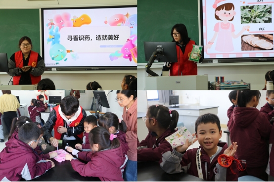 活动的最后一站,师生们来到药学院,体验中医药之美。本草社的志愿者首先给小朋友们详细讲解了中药香皂、香囊的制作步骤,以及每一种中药的特点与功效。随后,在志愿者的指导和帮助下,孩子们亲手制作中药香皂、香囊,忙得不亦乐乎,在实践中切实感受着中医药与生活的紧密联系。
