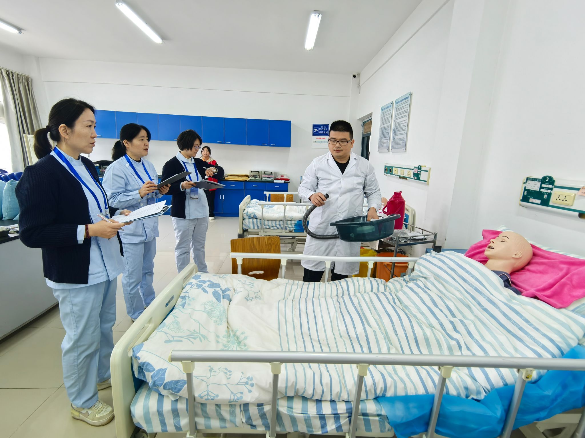 为保障考试的专业性与规范性,护理学院提前组织了专项考务工作会议,对考评标准、流程细节和岗位职责进行了全面部署。考试设置理论与实操两个环节,理论考场秩序井然,实操考核则采用多考官独立评审机制,确保评分过程的公正性与专业性。