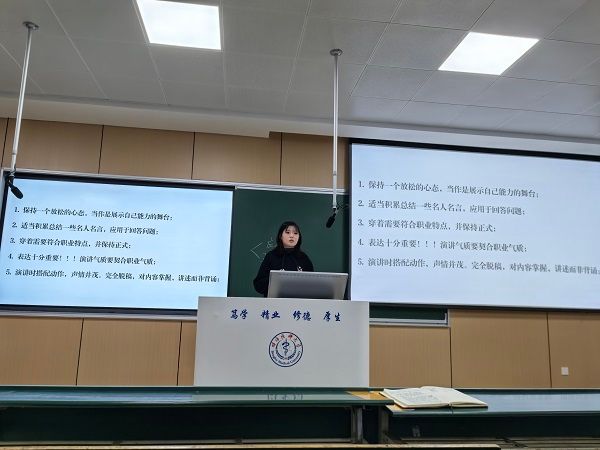 阎嘉琪同学结合自身参赛经历,从材料准备、现场展示、答辩技巧等方面,生动具体地分享了参赛心得与感悟,为同学们提供了可资借鉴的宝贵经验。