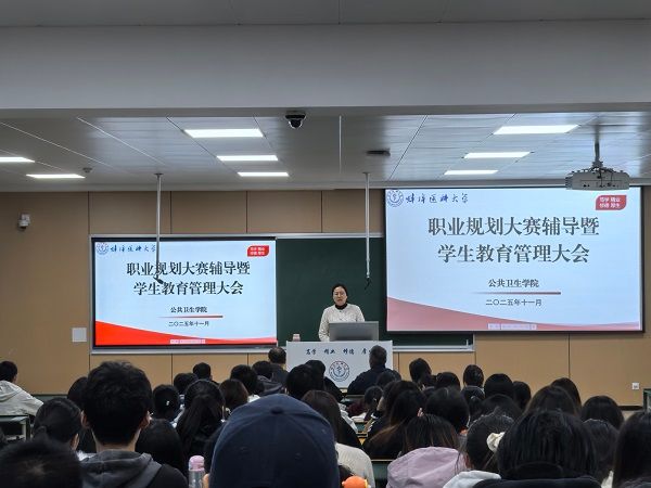 11月6日晚,公共卫生学院召开职业规划大赛辅导动员会议,邀请学生处副处长吴涛副教授作专题报告,2024年全国职业规划大赛铜奖、安徽省金奖获得者,临床医学2022级阎嘉琪同学分享参赛经验。学院党委书记张浩、年级辅导员及学院全体在校学生参加了会议,党委副书记吴金萍主持。