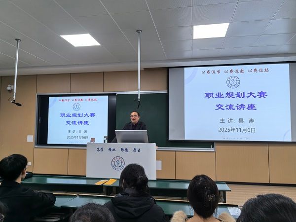 吴涛结合多年指导学生就业与职业发展的实践经验,围绕大学生职业规划的重要意义、赛事解读与备赛策略等内容展开了深入浅出的讲解。报告内容详实,见解独到,为同学们参与职业规划大赛以及个人未来发展提供了宝贵的理论和实践指导。