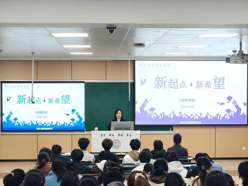 口腔医学院于11月6日举办“新齿路,医腔热,志未来”新生入学教育讲座,帮助新生进一步加深对大学的了解、明确成长的方向。学院党委副书记张云波、副院长姜丽娜、全体辅导员及2025级新生参加。