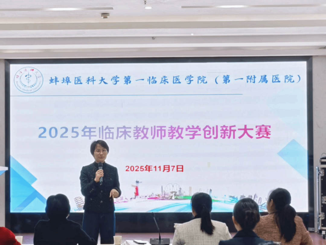 为提升临床教师的教学创新能力与综合素养,11月7日,第一临床医学院(第一附属医院)举办2025年度临床教师教学创新大赛。比赛邀请学校往届省赛获奖教师、教研室教师代表及教学管理人员担任评委,各教研室教师代表到场观摩。