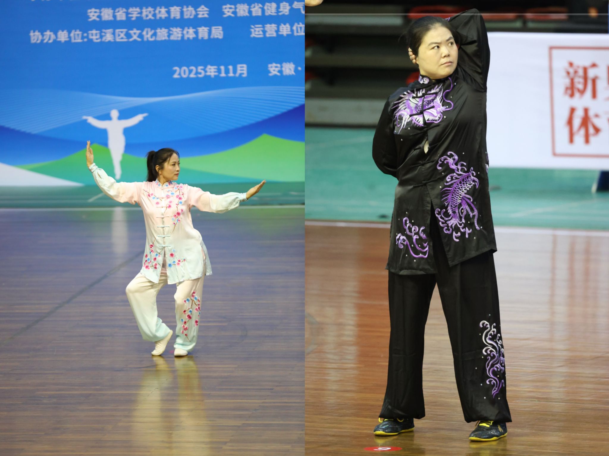 11月16日,2025年安徽省青少年健身气功公开赛(高校组)暨第二届安徽省高等院校健身气功比赛在黄山市落幕。今年我校首次组建教职工健身气功队参赛,在全省47支高校代表队的激烈角逐中斩获集体项目健身气功·大舞二等奖、八段锦三等奖;人文与健康学院的石婷婷、马艳分别荣获健身气功易筋经三等奖、大舞三等奖。