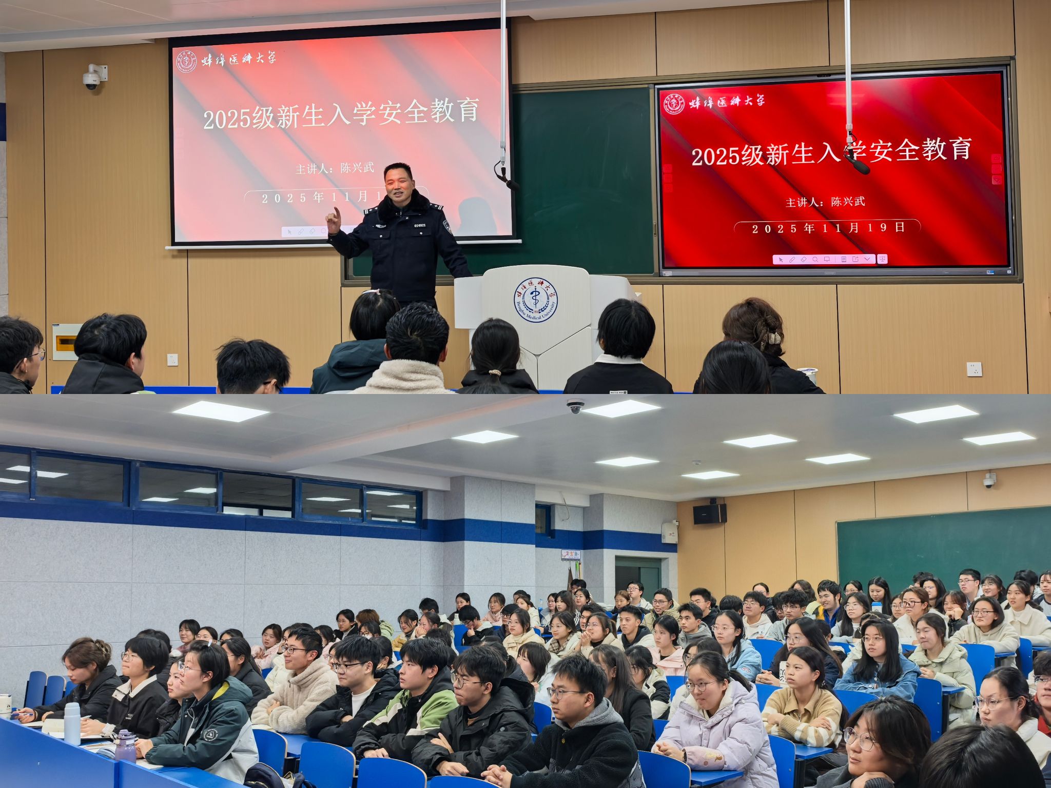11月18日下午,精神卫生学院举办2025级新生安全教育讲座,特邀蚌埠市龙子湖区110指挥中心主任陈兴武担任主讲,学院2025级全体新生参加。