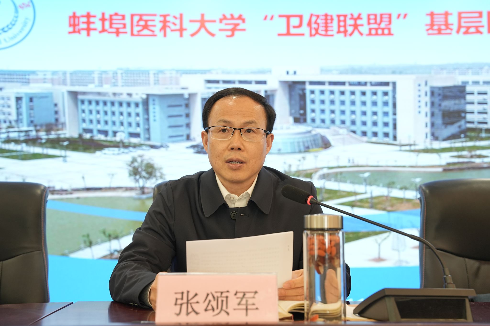 张颂军在致辞对蚌埠医科大学及附属医院专家团队的到来表示热烈欢迎和衷心感谢。他指出,蚌埠医科大学多年来为灵璧县医疗卫生人才培养和技术提升提供了有力支持。本次培训是推动优质医疗资源下沉、强化基层健康网底的重要实践。希望全体学员珍惜机会,认真学习,将专家的先进技术和经验学懂用好,切实提升服务群众健康的本领。