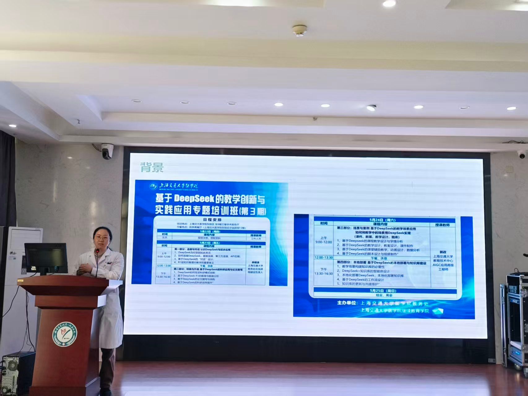 王蒙老师以《基于DeepSeek的教学创新与实践》为题作报告,现场演示如何借助“万能提示词”快速生成教案、习题与视频脚本,分享了AI医学助教、个性化学习路径设计等具体应用。